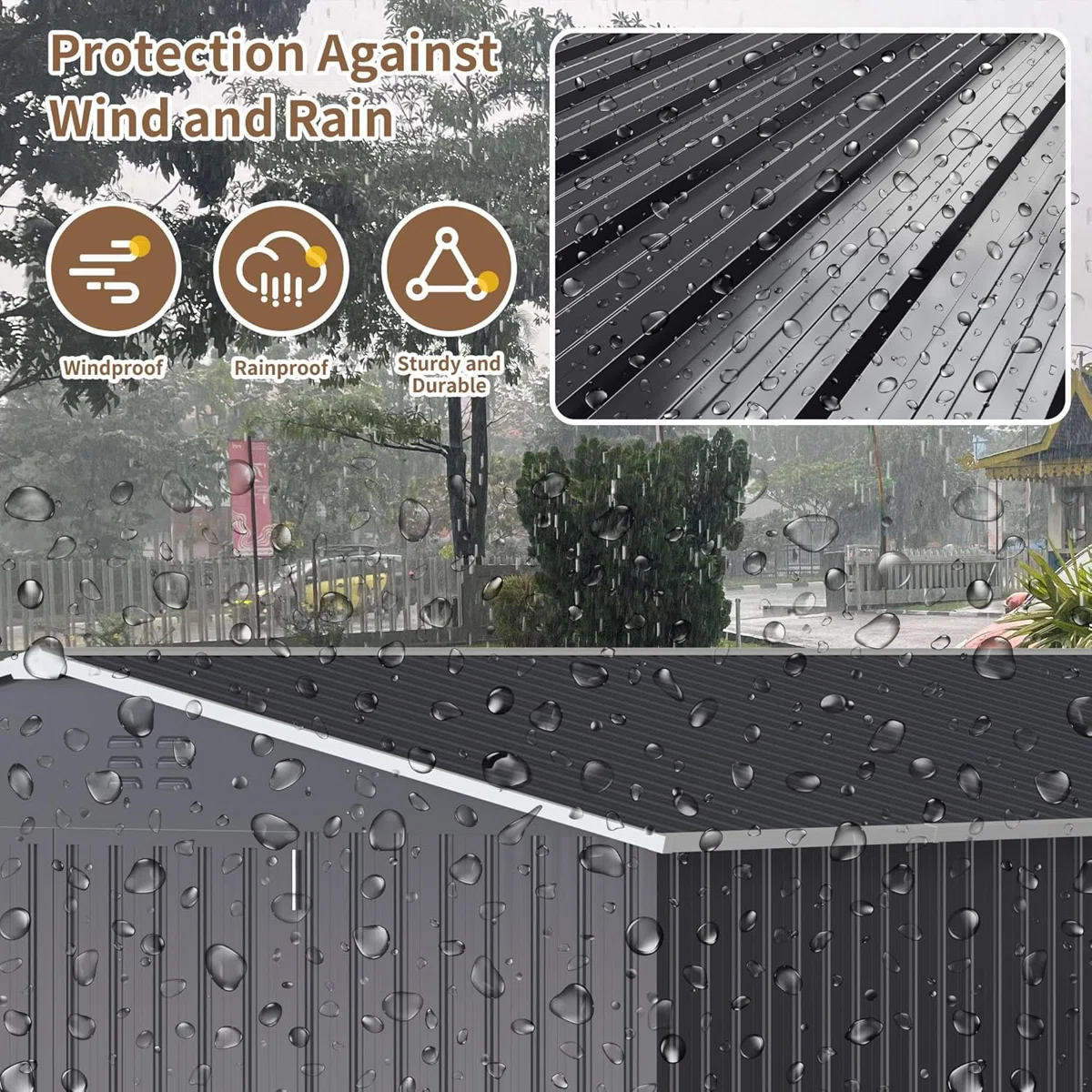 Lockable double doors provide convenient access while supporting basic security. Durable corner guards help protect the structure and improve long-term durability.