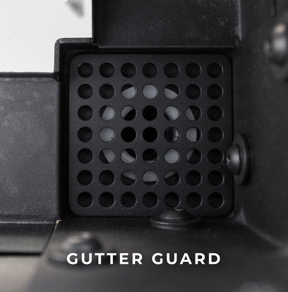 • Integrated drainage system: water is channeled through an integrated guttering system into downspouts in leg posts
