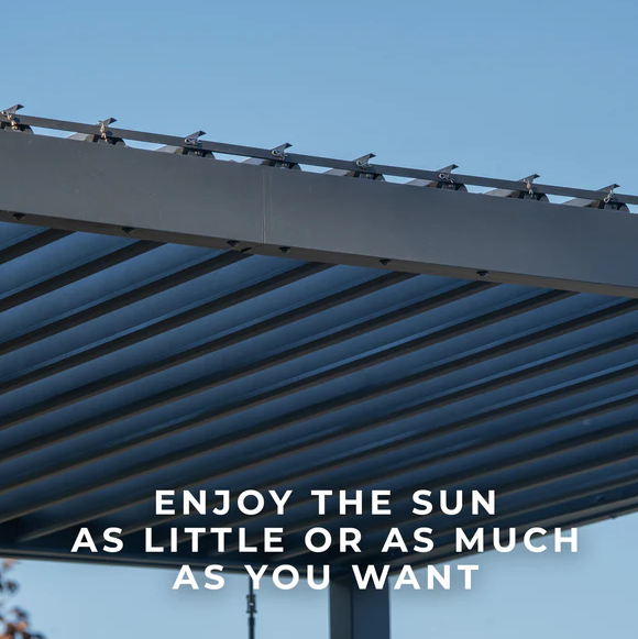 • Adjustable: louvers open fully to allow Sunlight through or close fully for complete shade and Rain protection