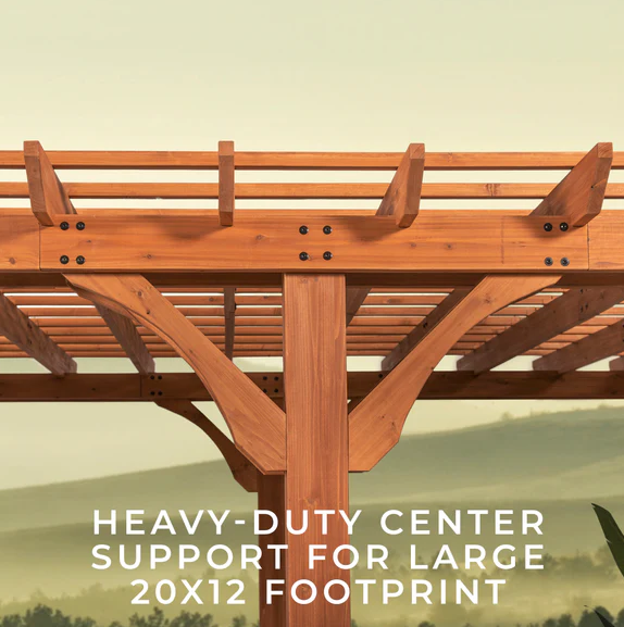 Beaumont 20 ft. x 12 ft. Light Brown Traditional Outdoor All Cedar Wood Patio Pergola Shade Structure with Electric
