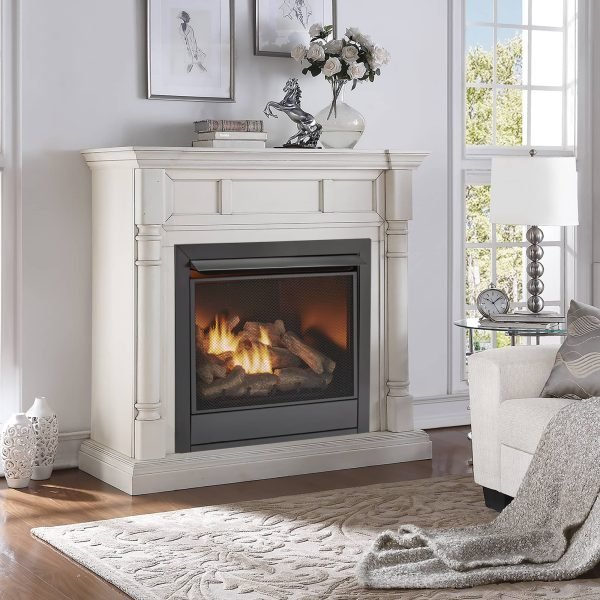 The Duluth Forge Ventless Fireplace (FDI32R-M-AW) provides a beautiful and realistic flame. It features realistic fiber ceramic logs for a stunning home experience. Make your house feel like home with our Furniture Grade Quality Fireplace Mantel and Full-Size Duluth Forge Dual Fuel Ventless Gas Fireplace Insert. The product is made to produce up to 32,000 BTU of heat, enough to heat 1,500 square feet of living space. The antique white finish creates a nice contrast that completes the look of your home.