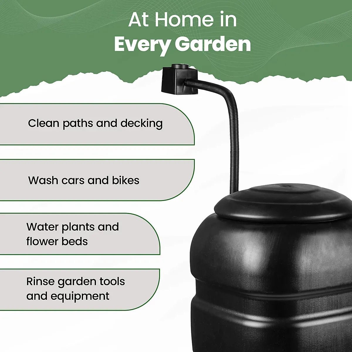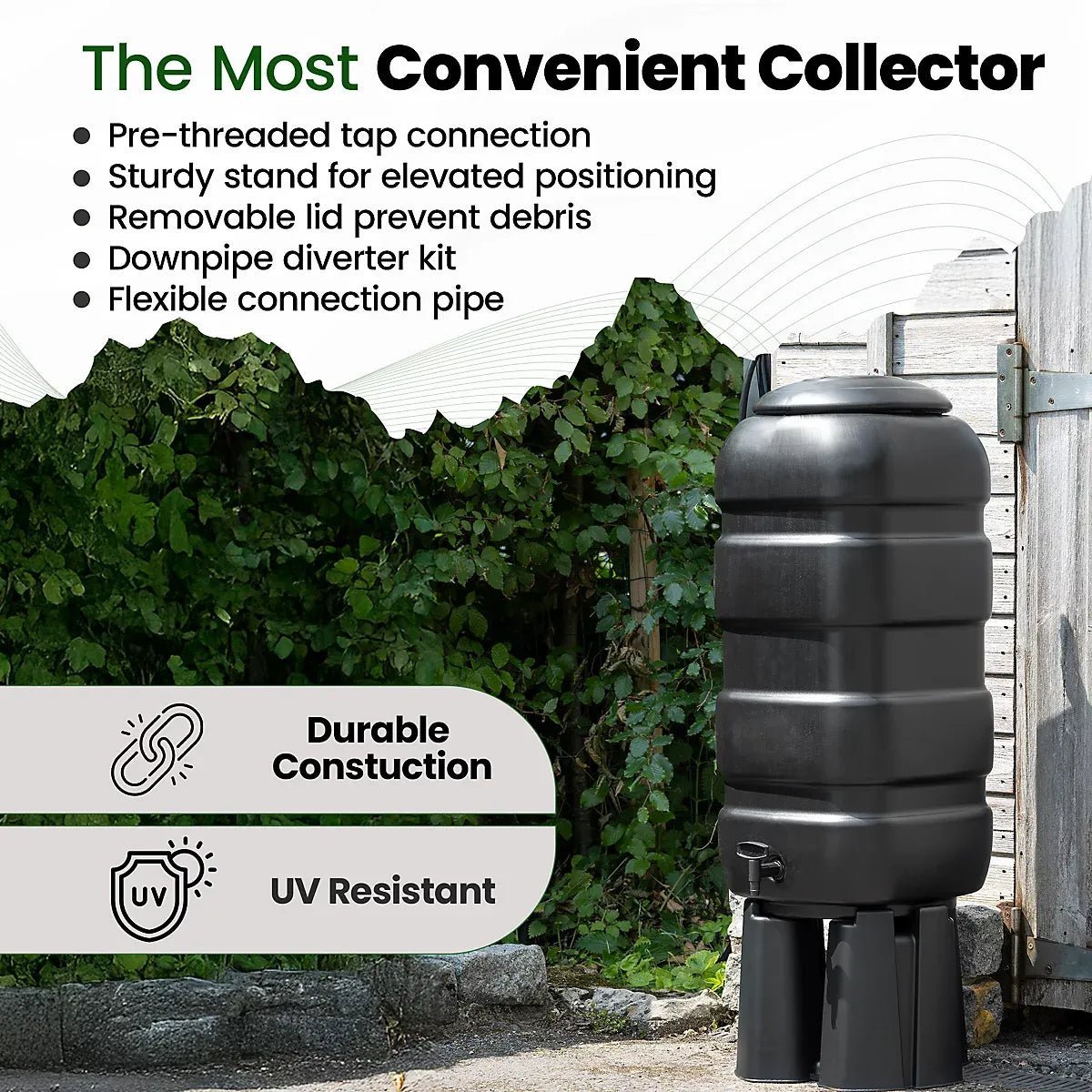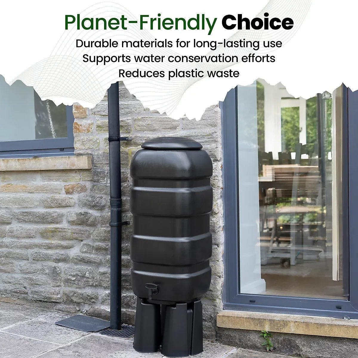 - Butt, stand, tap and downpipe water diverter kit included.