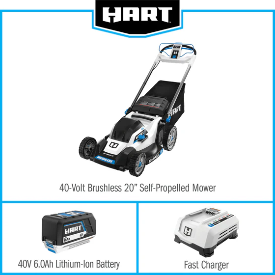 The HART 40V 20-inch Brushless Self-Propelled Electric Lawn Mower is a capable and convenient battery-powered mower sold exclusively at Walmart, designed for homeowners who want a quiet, low-maintenance alternative to gas without sacrificing cutting performance. Powered by a 40V brushless motor paired with the included 6.0Ah lithium-ion battery, it delivers enough runtime to cut up to half an acre on a single charge, making it a practical choice for typical suburban lots. The brushless motor design means less wear over time, lower vibration during operation, and no need for the oil changes, spark plugs, or carburetor maintenance that come with gas-powered alternatives.