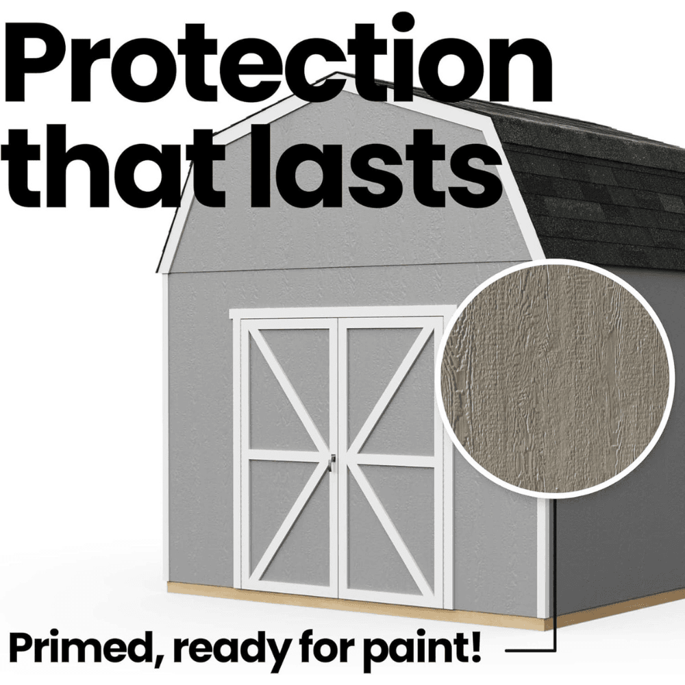 - Factory-primed siding is ready to paint, allowing you to customize the shed to match your home.