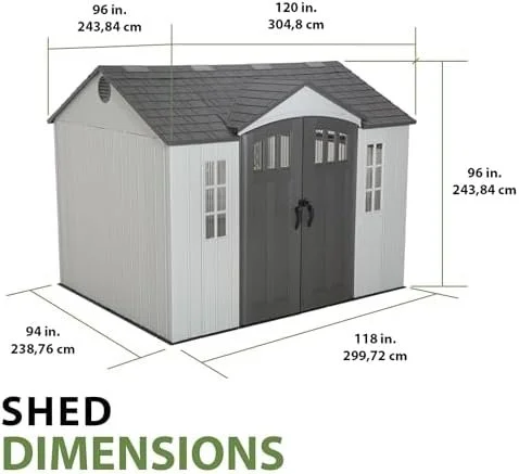 Spacious Storage Capacity: 10 ft. W x 8 ft. D layout offers ample room for outdoor tools, equipment, and supplies