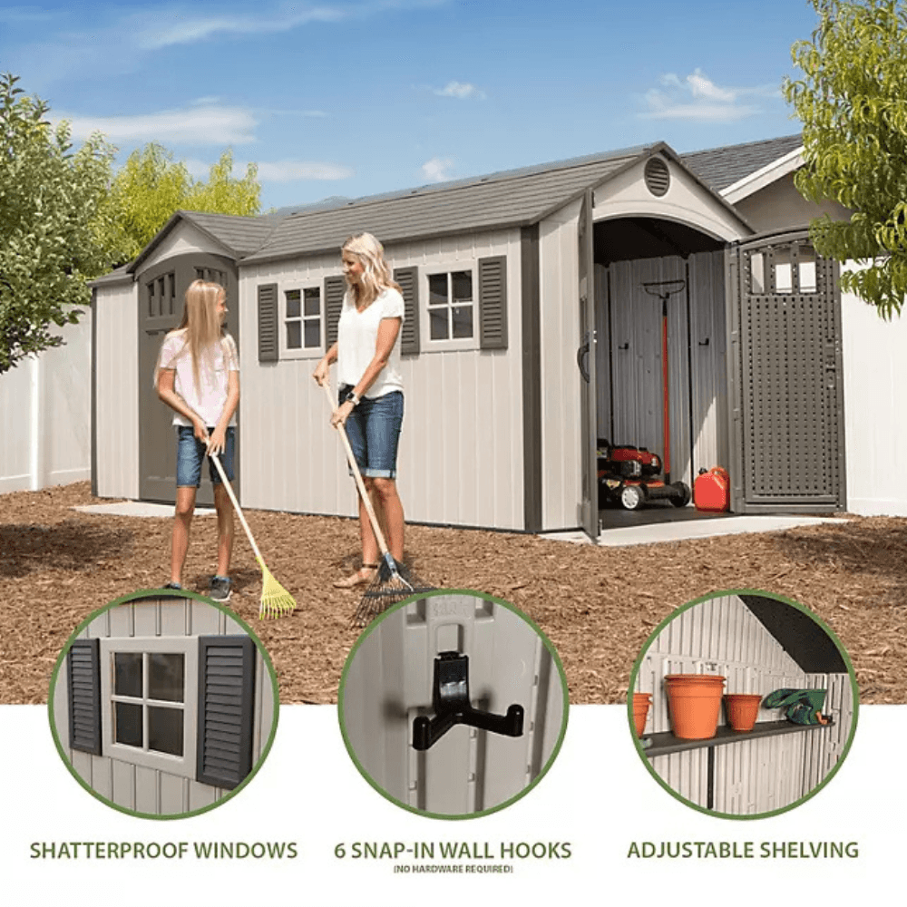 Lifetime 8′ x 17.5′ Outdoor Storage Shed Dual Entry, Tan