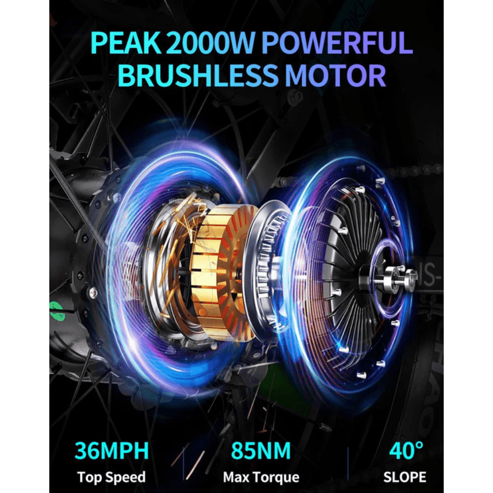 • Powerful 2000W Motor: Conquer demanding terrains with a high-torque motor that makes steep slopes (up to 45°) and rough trails feel effortless.
