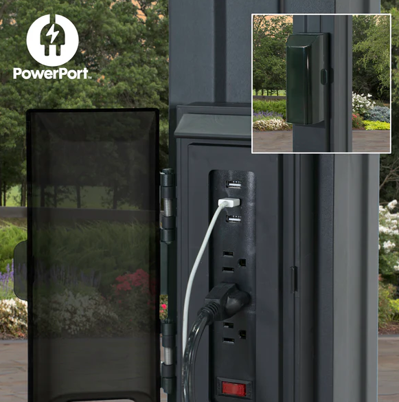 Traditional and timeless, the Stratford Steel Pergola by Backyard Discovery brings effortless charm to your outdoor living area. This stunning patio pergola combines enduring craftsmanship with modern sophistication, featuring a stylish black finish that creates a bold, striking aesthetic. Engineered with powder-coated galvanized steel, it delivers maintenance-free durability while providing superior protection against rust, chipping, corrosion, and UV damage. The elegant design provides plenty of shade with the integrated pergola canopy. This soft shade sail filters sunlight while offering protection from the elements, creating the ideal balance of shelter and ambiance. Pro-Tect™ tested and proven to withstand winds up to 100 mph*, this outdoor metal pergola stands strong through adverse weather conditions. Its generous size provides plenty of room for furniture, fire pits, and outdoor décor to create the perfect space for gatherings or simply relaxing. The patented PowerPort™ features three electrical outlets and three USB ports, making it easy to power your outdoor entertainment needs. This ready-to-assemble backyard pergola kit offers step-by-step guidance with the BILT® app, for easier installation.