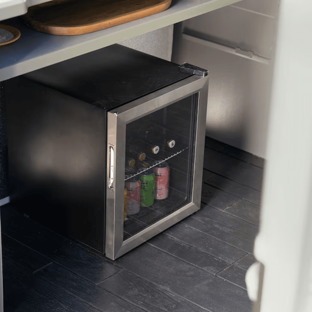 - Interior countertop doubles as a prep station, making it easy to serve drinks and snacks.