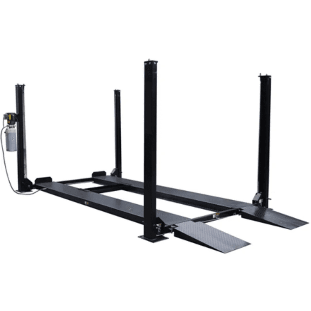 The Tuxedo FP8K-B Deluxe Series Four-Post Lift is a high-capacity, space-saving automotive lift engineered for secure vehicle storage and dependable service operations. With an 8,000 lb. lifting capacity, this lift is ideal for home garages, classic car collectors, dealerships, and auto repair shops.